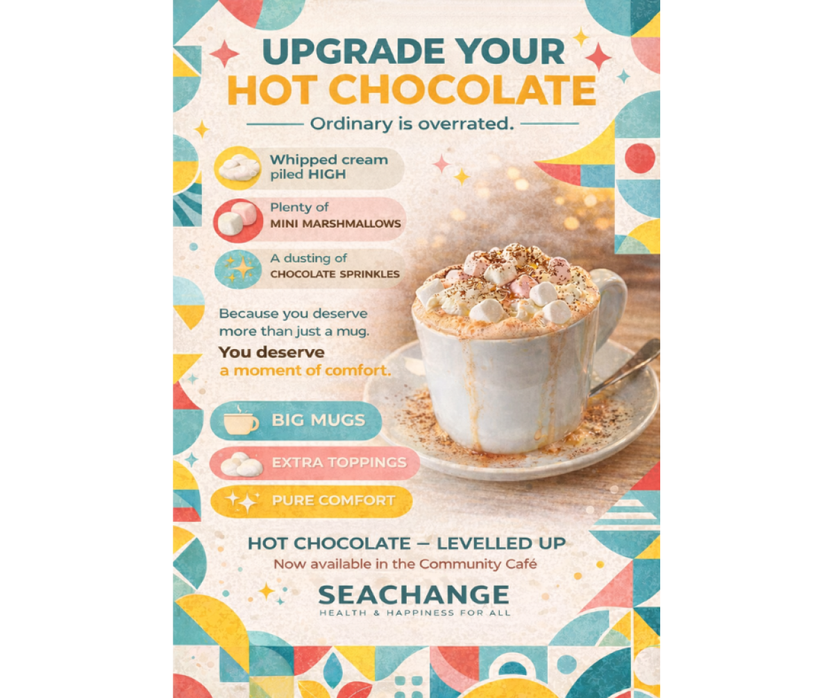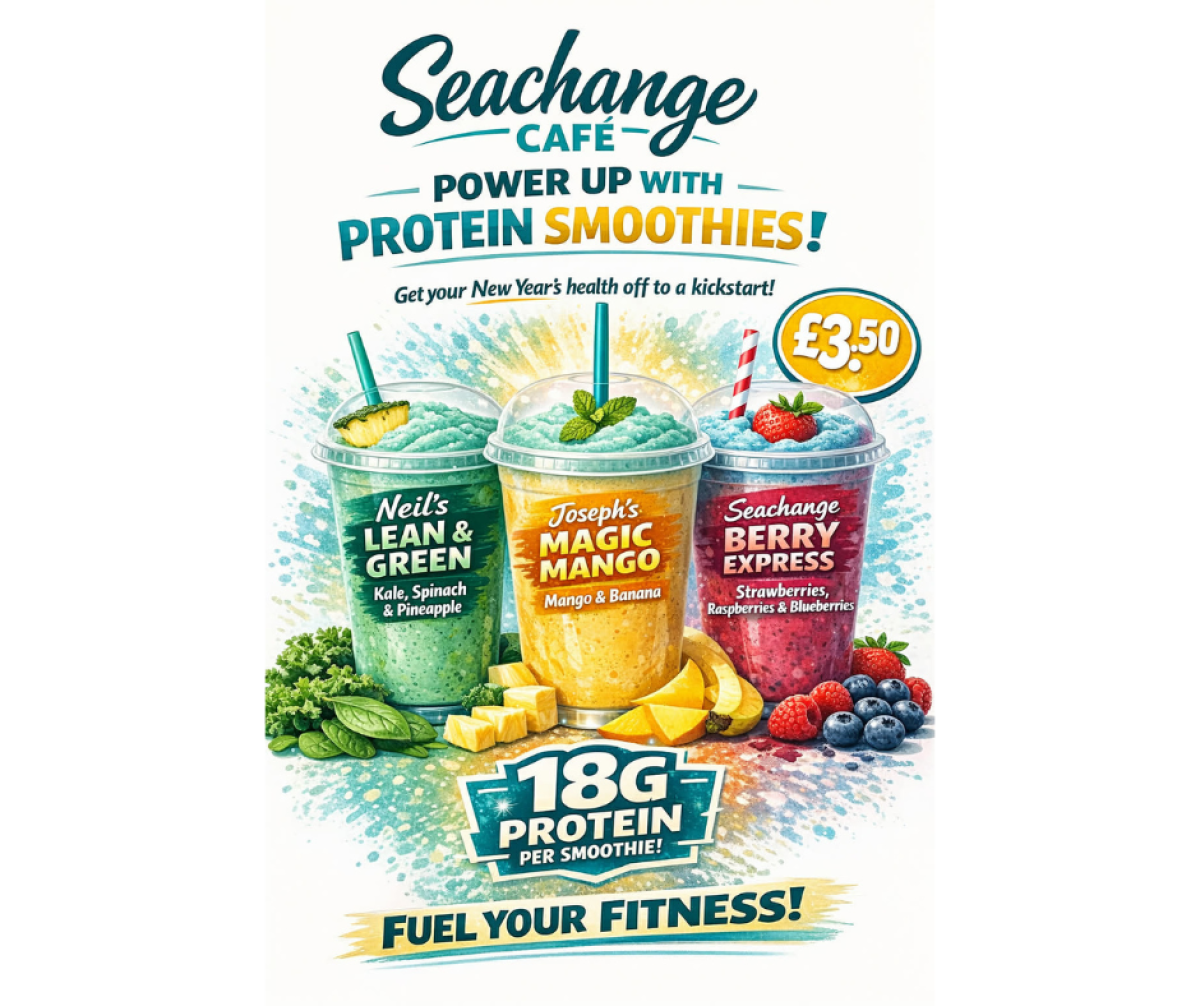 Our café is open for Seachange users and the general public. We are currently weekdays (Monday-Friday) from 09:30 am-3:00 pm and offer a range of hot and cold drinks, snacks as well as delicious cakes and scones.